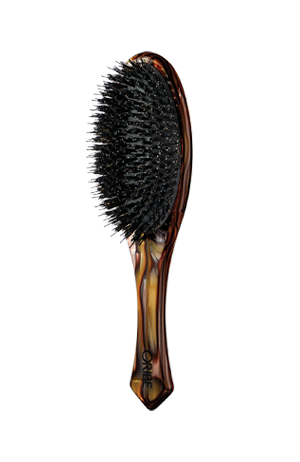 The Oribe Flat Brush is made with custom-designed Italian resin and combines artisanal design with an ergonomic handle for perfect grip and balanced weight. This brush features a mix of boar bristles and rounded nylon pins with a 97% natural rubber cushion to delicately stimulate the scalp and polish hair for an ultra-sleek, shiny finish.